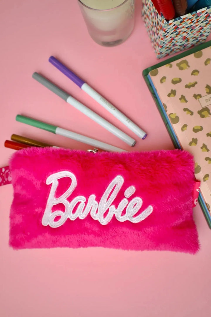 Barbie Yumuşak Peluş Tüylü Tek Bölmeli Fermuarlı El Askılı Çocuk Kalem Kutusu