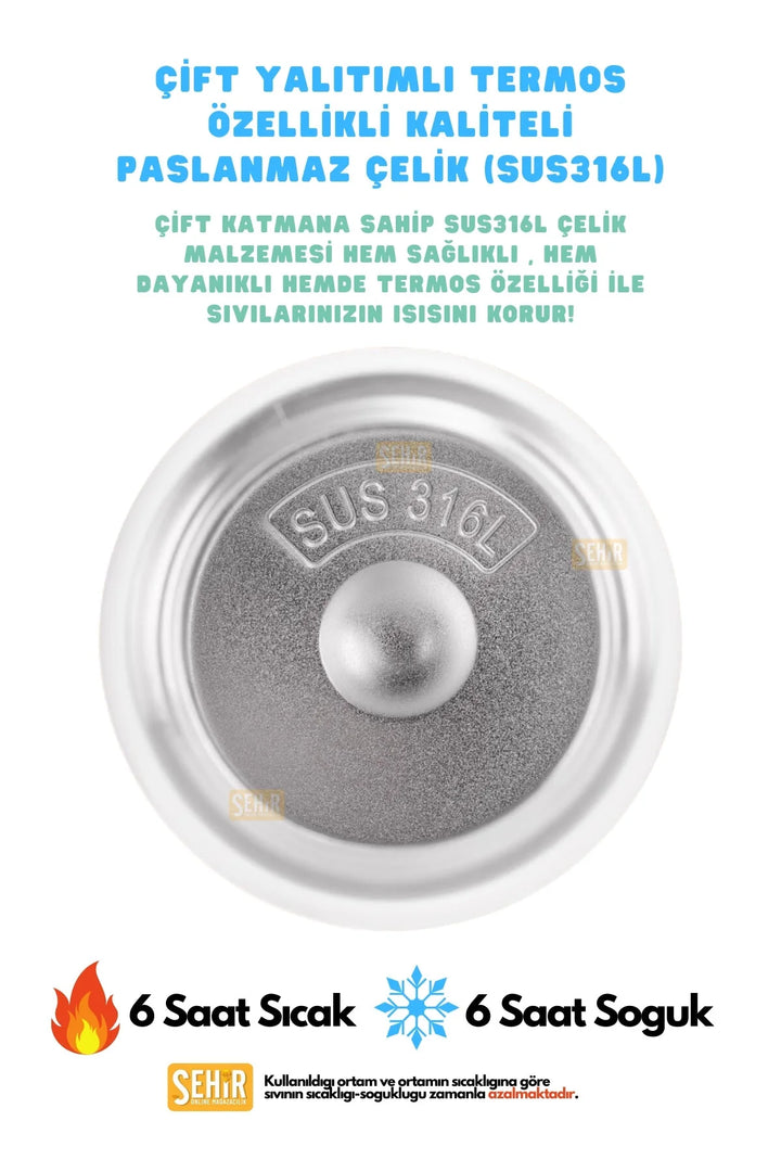 - Termos Etkisi : 6 saat sıcak / 6 saat soğuk (Önemli Not: Sıvınızın sıcak veya soğuk tutulma süresi ; çevre , çevre ısısı , kullanılan sıvı , vb. gibi durumlar karşısında değişiklik gösterebilir. Ayırca belirtilen saatler boyunca "aynı" sıcaklıkta korumamaktadır, sıcak veya soğuk olarak kabul edilen derecelere kadar korumaktadır.)
