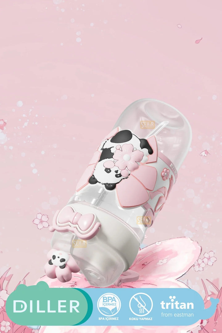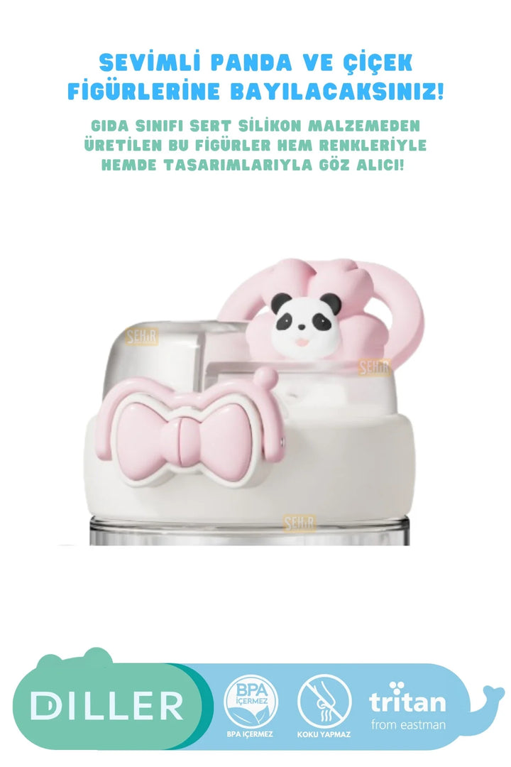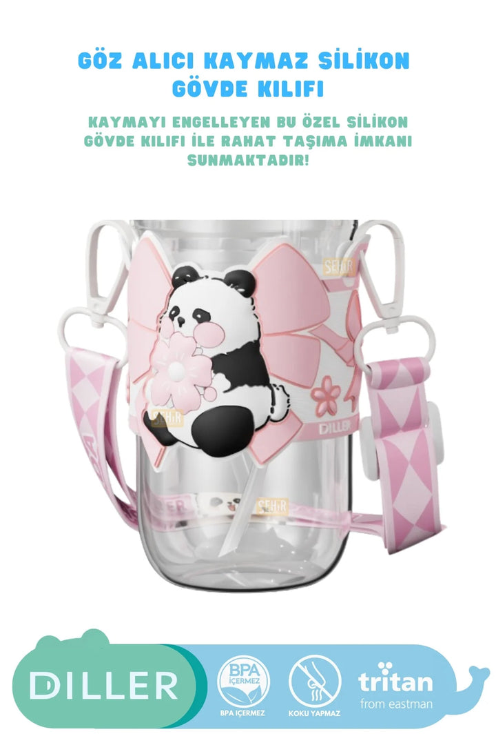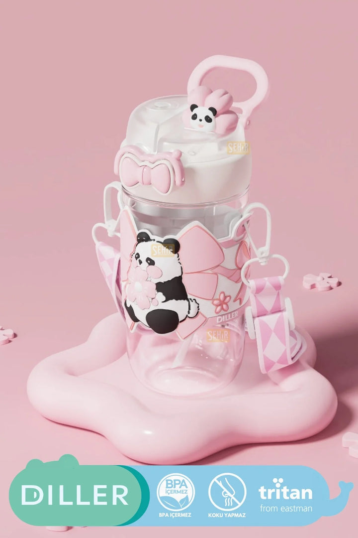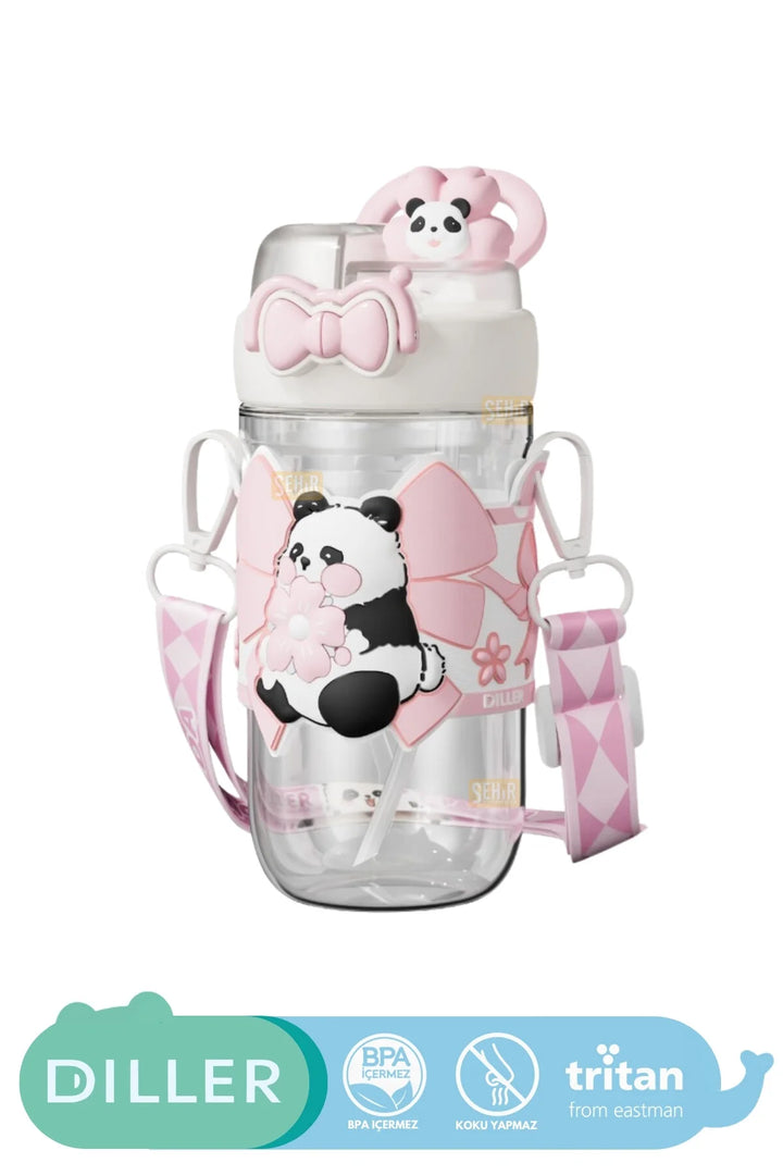 DILLER 580ml Yeni Koleksiyon Sevimli Hayvanlar Süslü Pipetli/Pipetsiz Boyun Askılı Tritan Çocuk Matarası