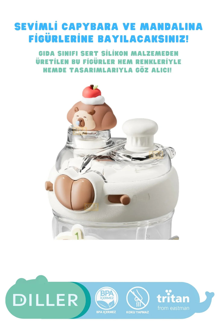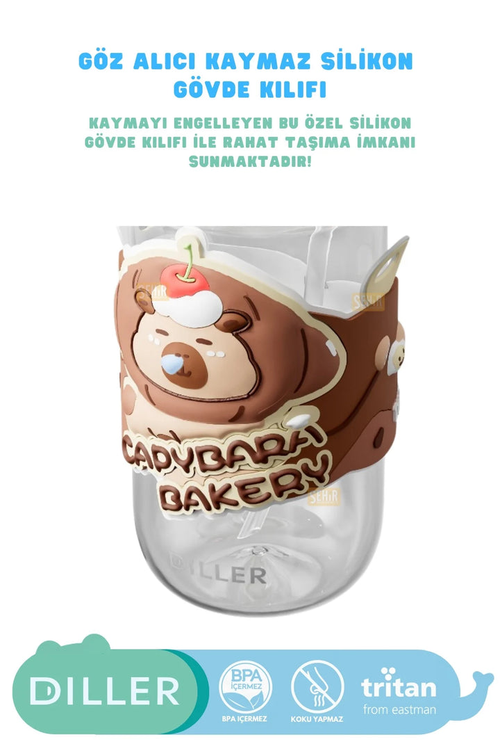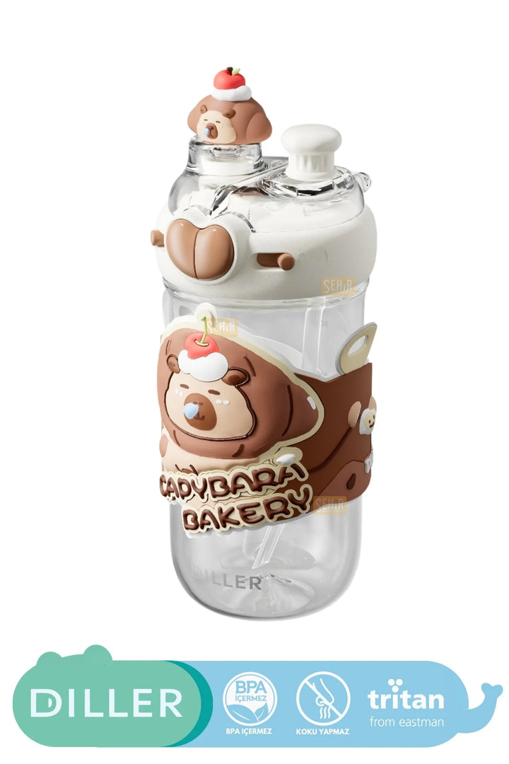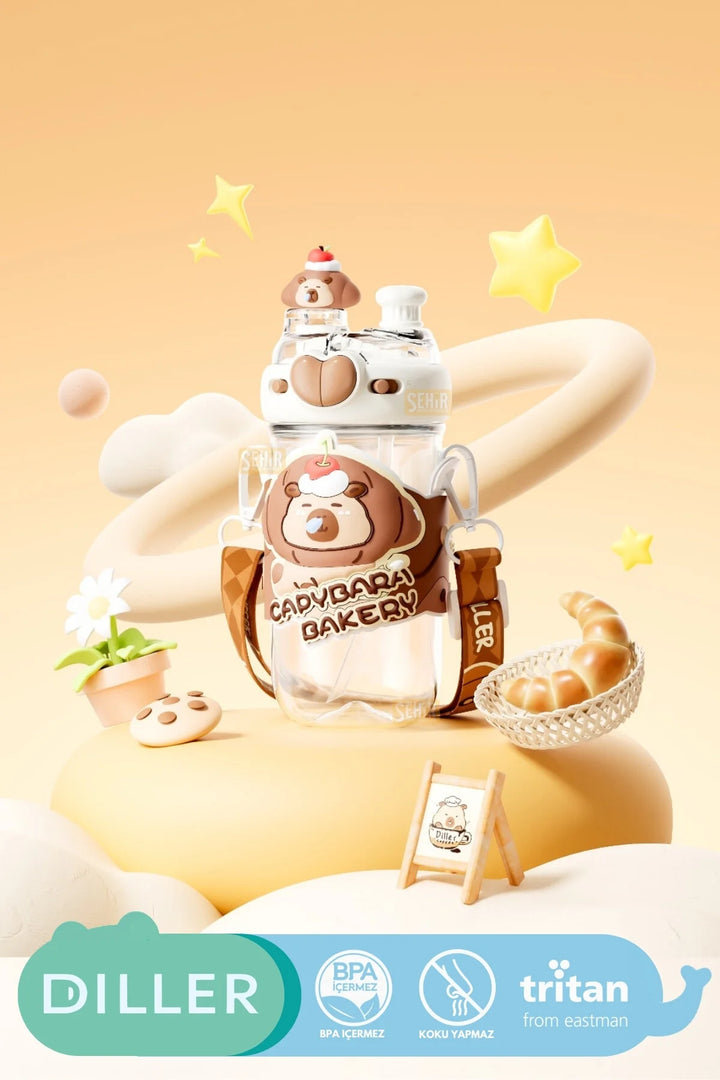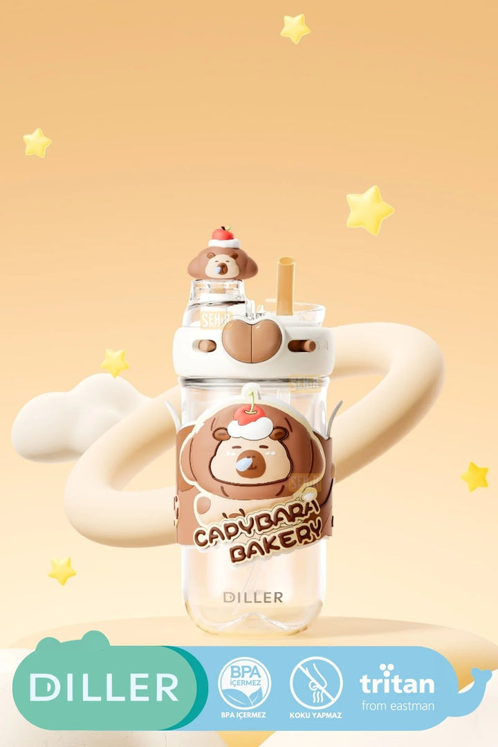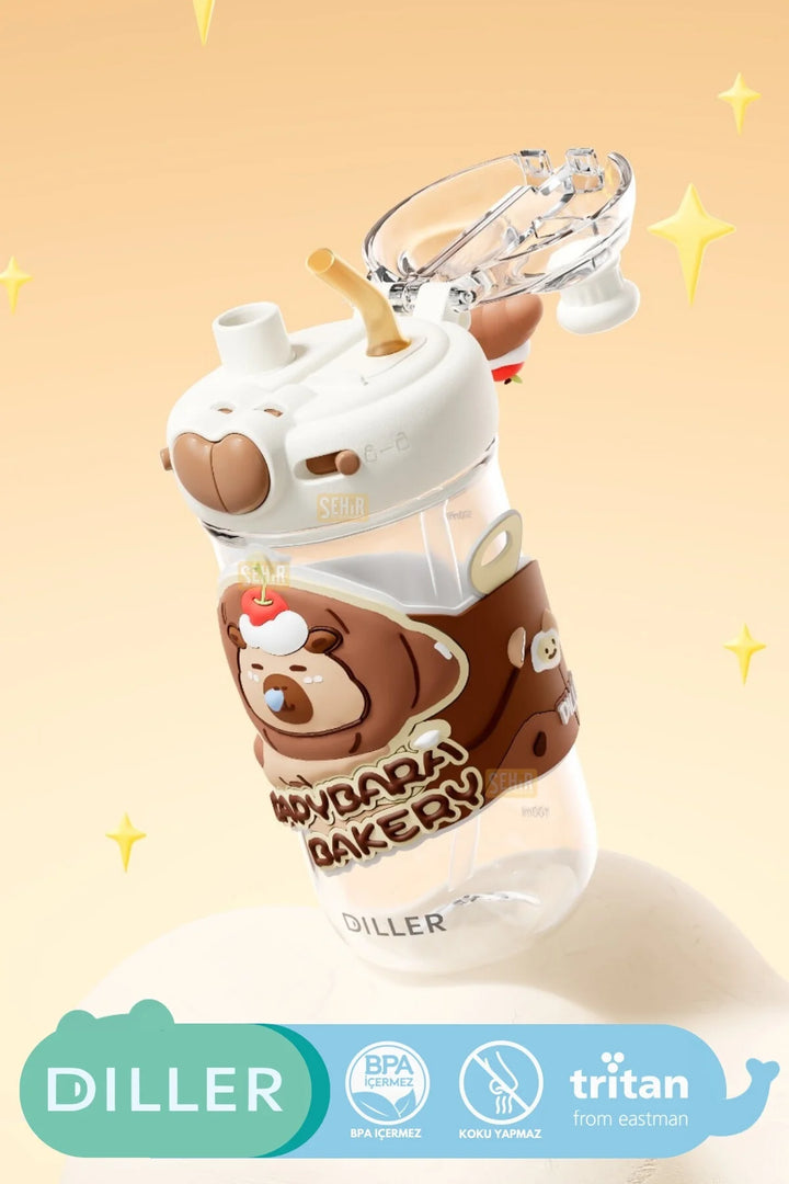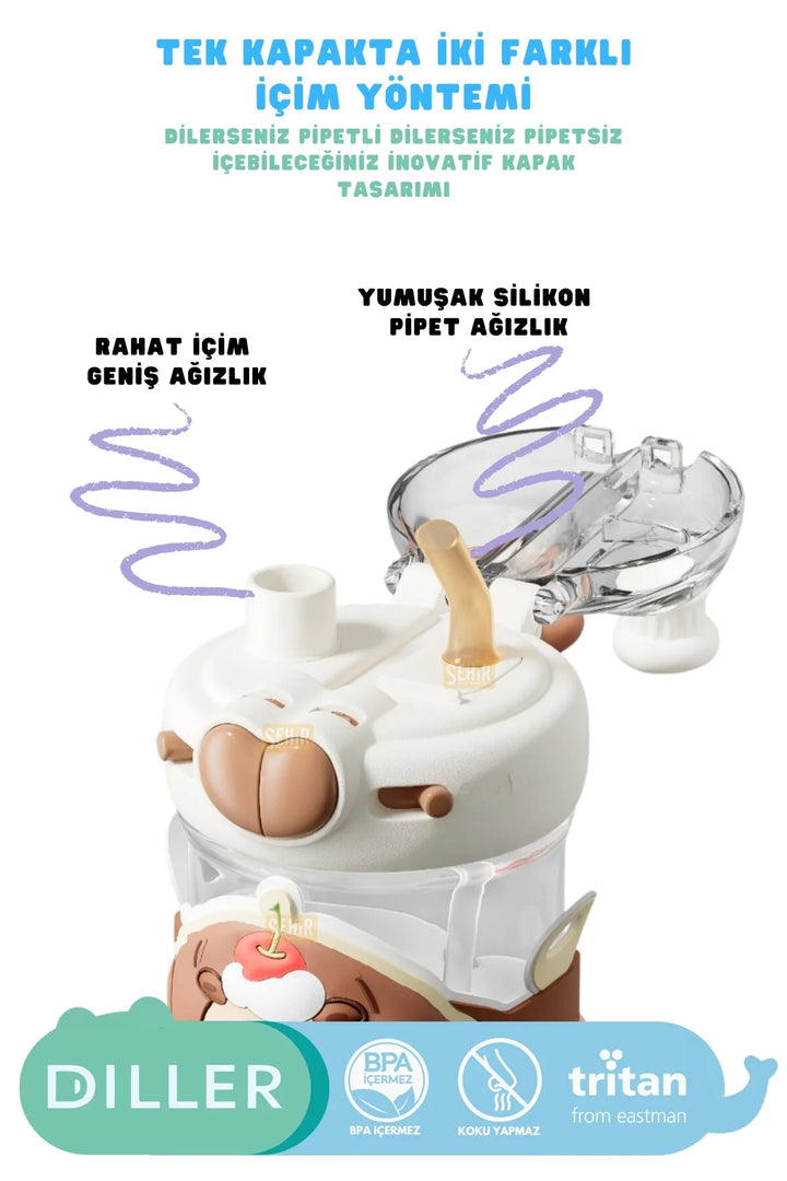 Diller 580ml Sevimli Hayvan Figürlü Tritan Matara | Pipetli & Pipetsiz Kullanım