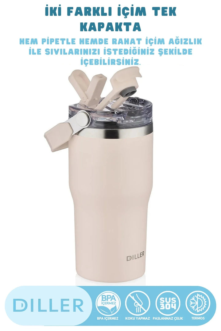 Diller 620ml Paslanmaz Çelik Tumbler Termos | Pipetli & Pipetsiz Kullanım