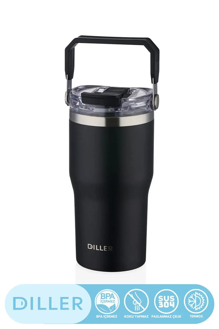 DILLER 620ml Yeni Koleksiyon Tumbler Pipetli/Pipetsiz Kullanım Kulplu Paslanmaz Çelik Termos