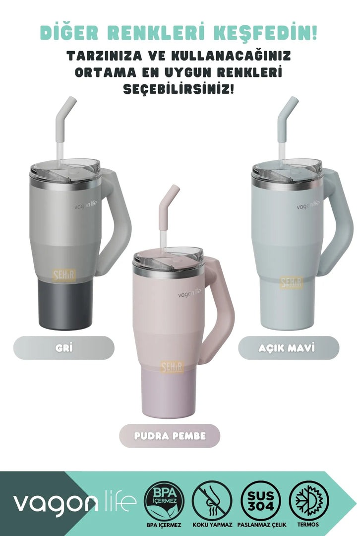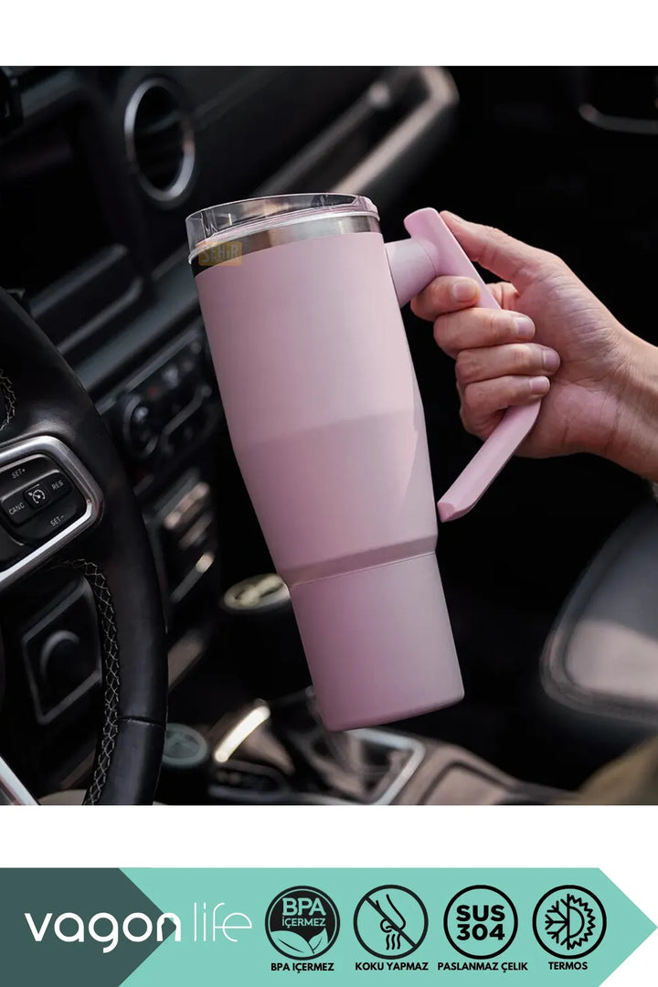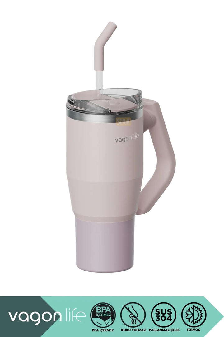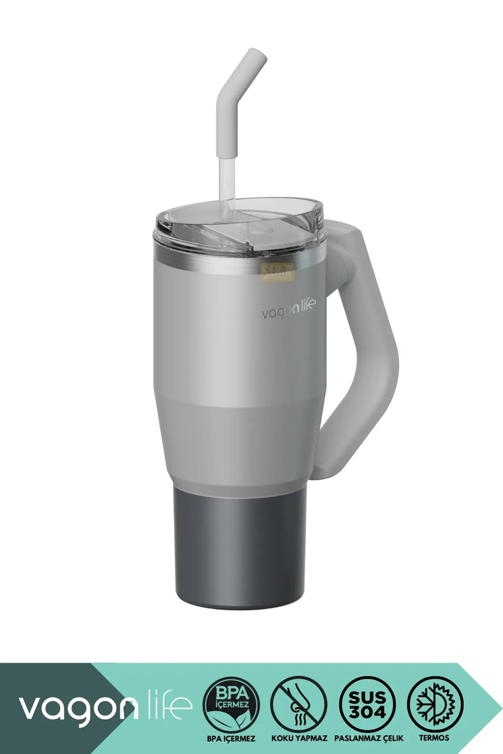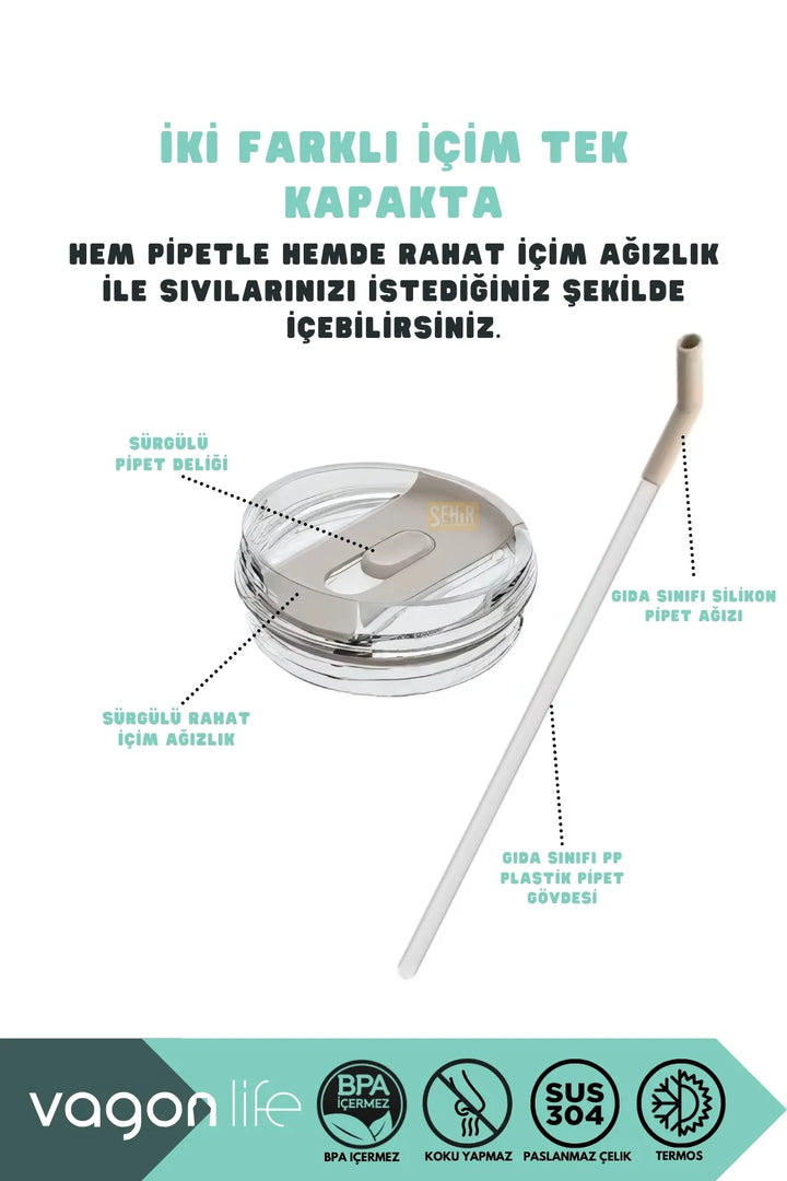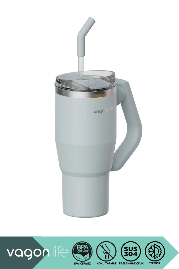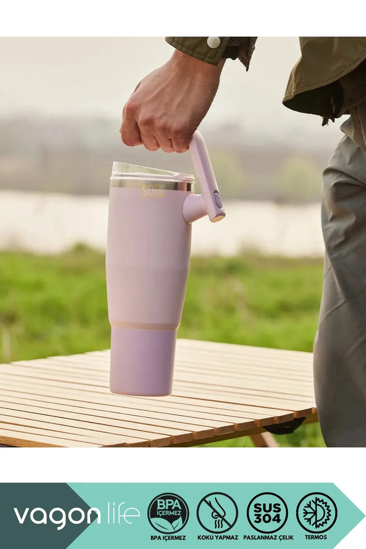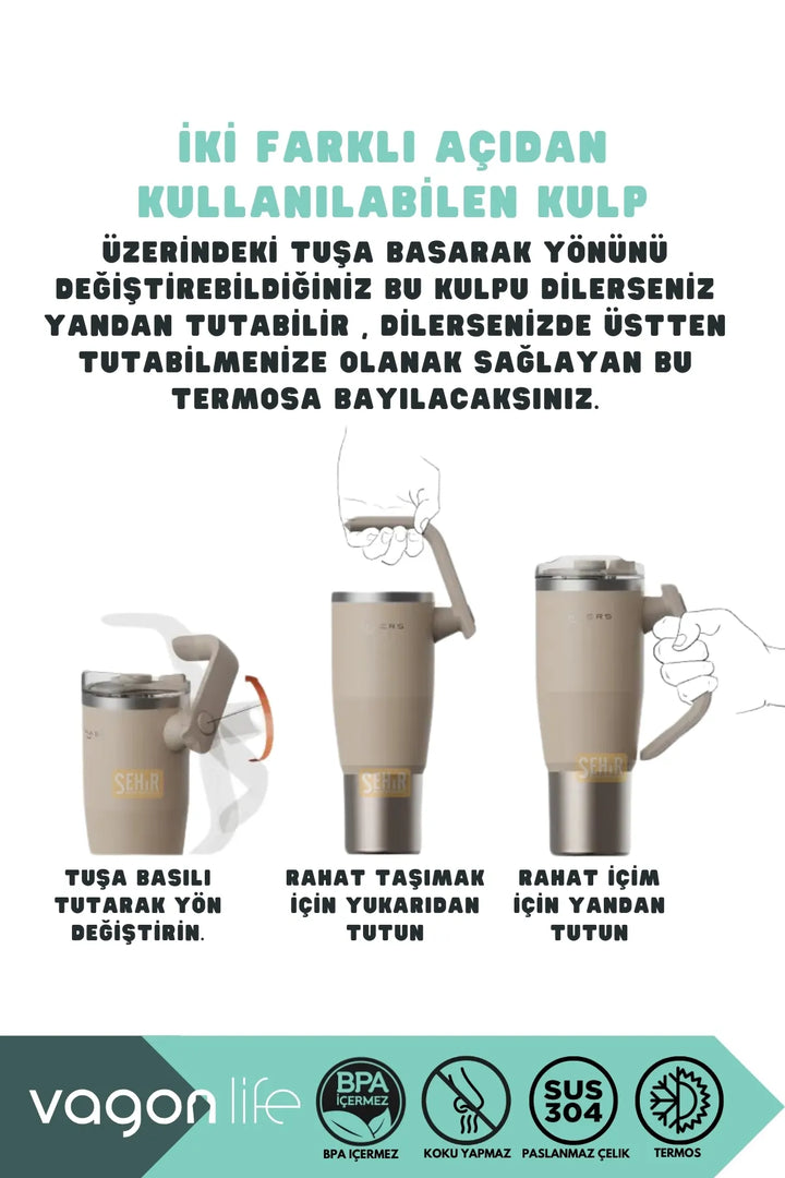 Vagonlife Tumbler 950ml Yeni Koleksiyon Pipetli/Pipetsiz Kullanım Fonksiyonel Kulplu Paslanmaz Çelik Termos
