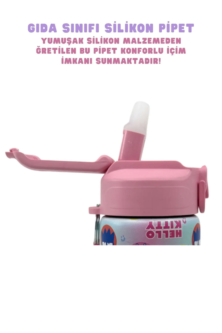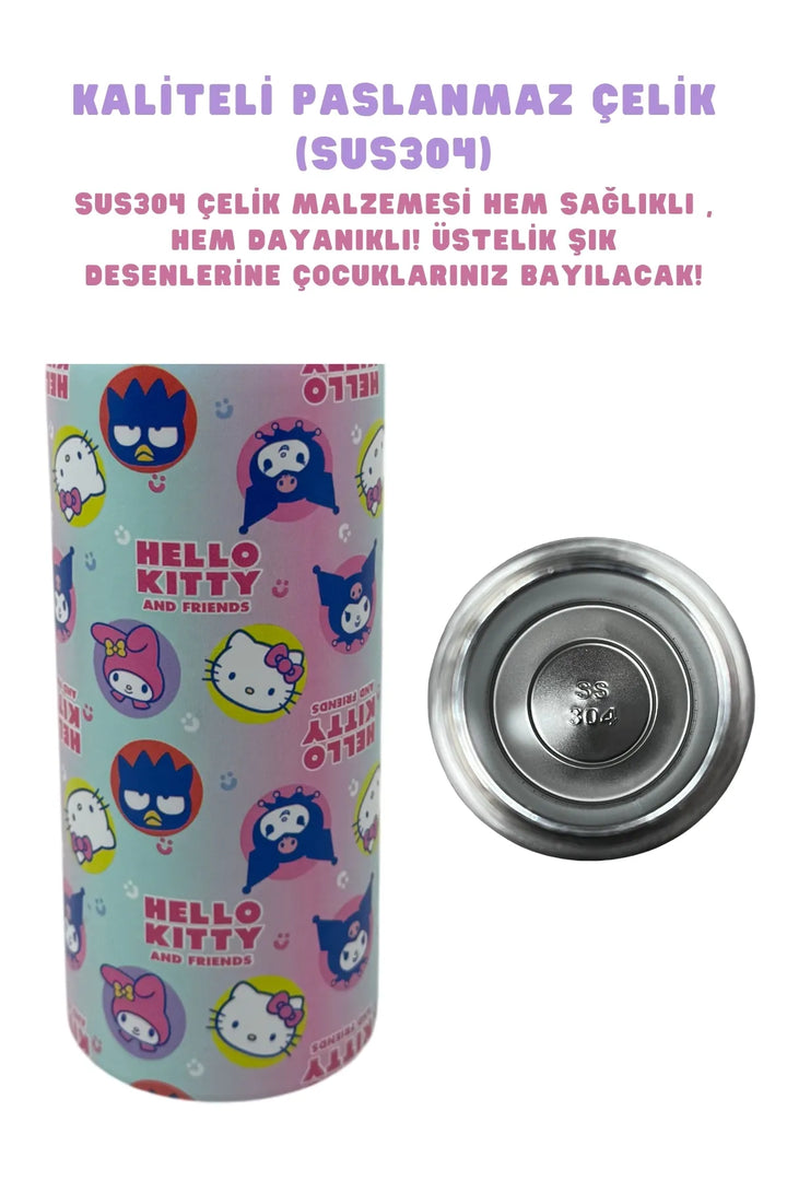 WİGGLE 600ml Hello Kitty - Kuromi & Friends Lisanslı Pipetli Kilitli Kapak Paslanmaz Çelik Termos Matara