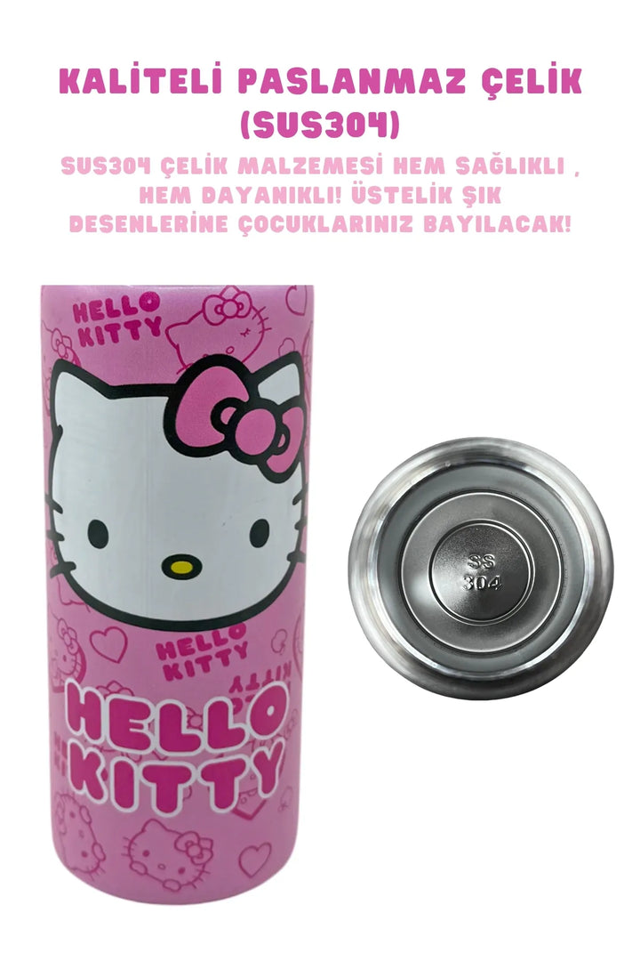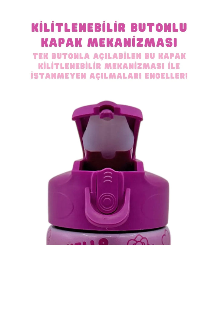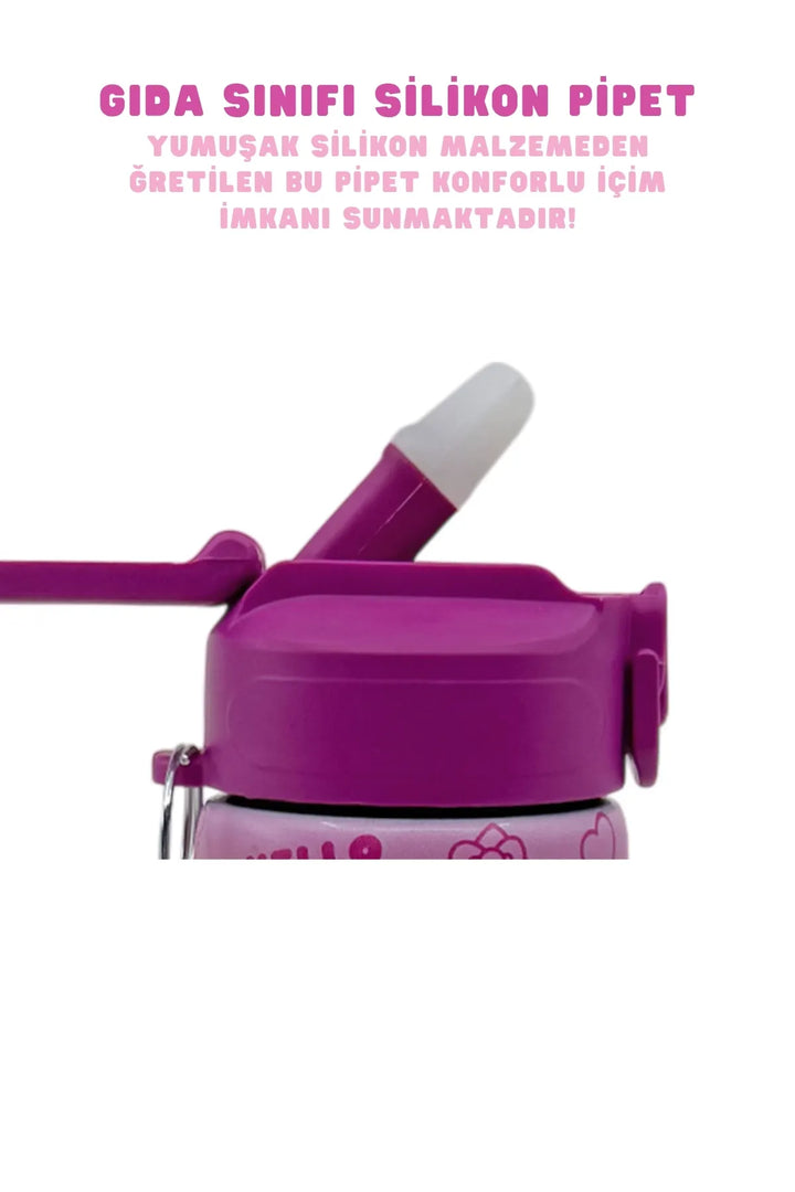 WİGGLE 600ml Hello Kitty Lisanslı Pipetli Kilitlenebilir Kapak Paslanmaz Çelik Termos Matara