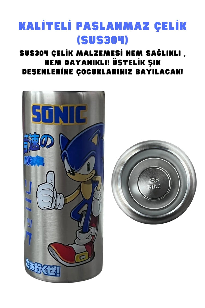 WİGGLE 600ml Sonic The Hedgehog Lisanslı Pipetli Kilitlenebilir Kapak Paslanmaz Çelik Termos Matara