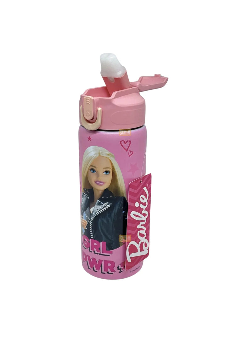 Wiggle Barbie 600ml Barbie Lisanslı Pipetli Kilitlenebilir Kapak Paslanmaz Çelik Termos Matara Pembe